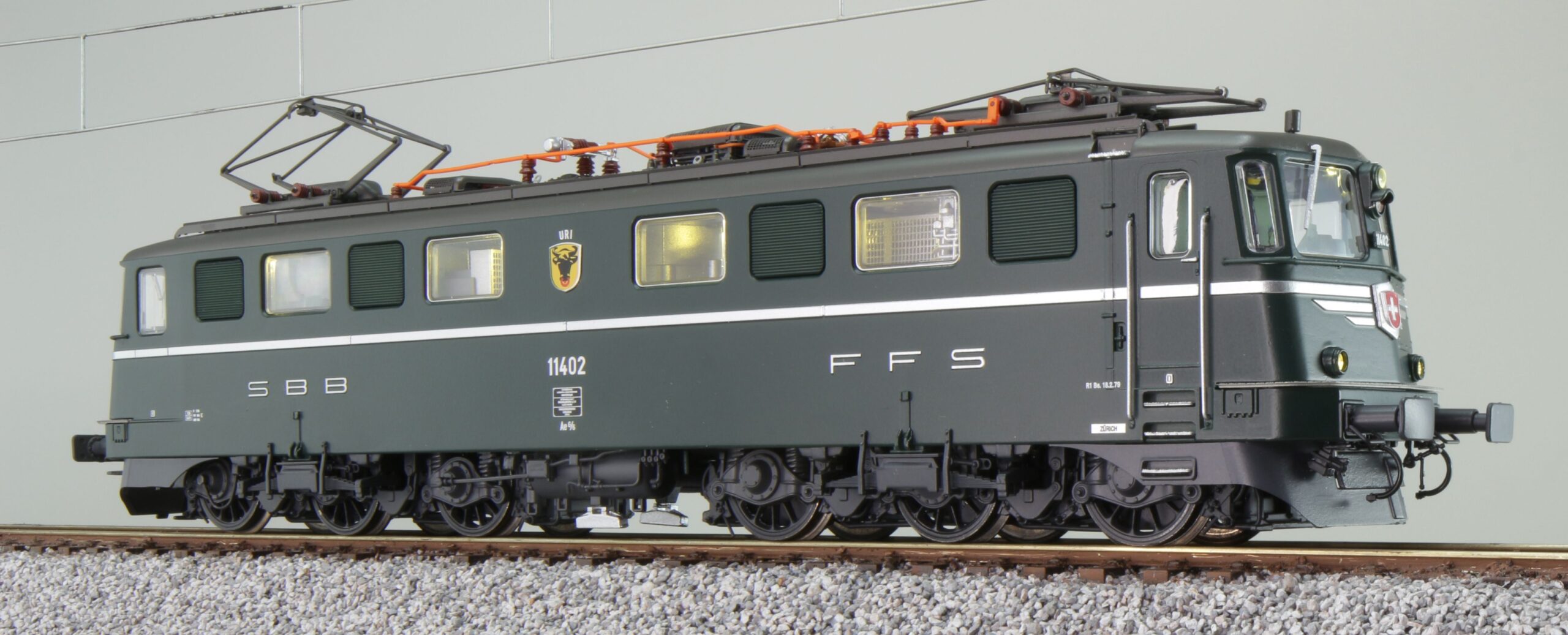 E-Lok, H0, AE6/6, 11402 Uri SBB, Dunkelgrün, Ep IV, Vorbildzustand um 1979, LokSound, Panto, DC/AC